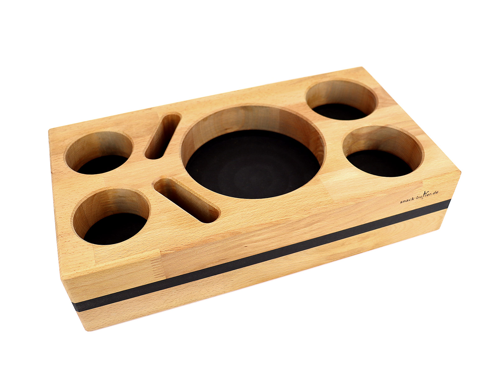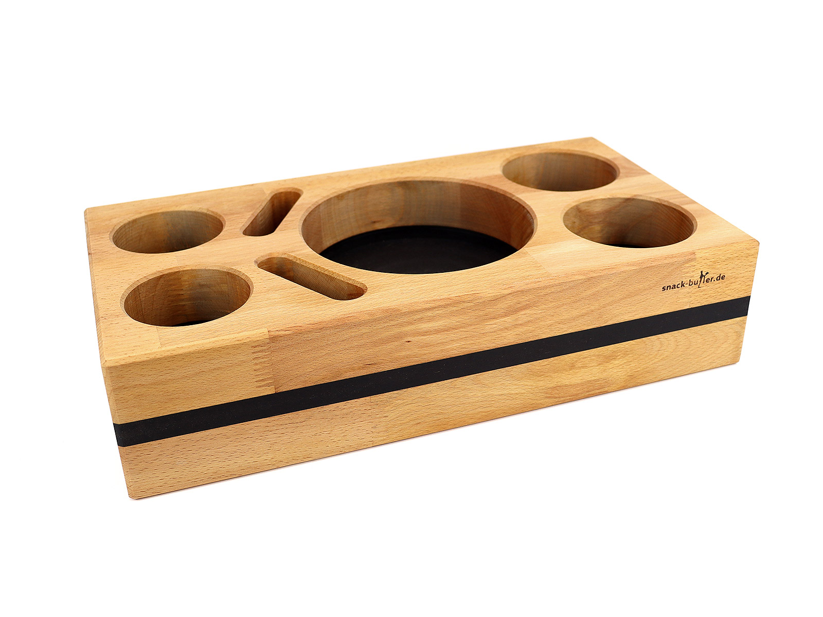 Der Snack-Butler "BLACK NATURE" bietet nicht nur praktische Funktionen, sondern ist auch eine ästhetische Bereicherung für dein Zuhause. Mit einer Breite von 40 cm, einer Höhe von 10 cm und einer Tiefe von 22 cm passt er perfekt in jede Umgebung. Die Schüsselbehälter des Snack-Butlers haben einen großzügigen Durchmesser von 16 cm und eine Tiefe von 5 cm. Der Flaschenhalter ist mit einem Durchmesser von 8 cm und einer Tiefe von 6 cm speziell für deine Getränke konzipiert. Der Saucenhalter bietet Platz für deine Lieblingssoßen mit einem Durchmesser von 9 cm und einer Tiefe von 4,2 cm. Die praktische Handyhalterung des Snack-Butlers ist 8 cm breit, 2 cm hoch und 5 cm tief. Das Snack-Butler-Set wiegt insgesamt ca. 4500g und ist somit robust und stabil. Um die Farbe und den Schutz des Holzes zu verbessern, hast du die Möglichkeit, es mit hochwertigen Ölen und Farblasuren zu behandeln. Beachte jedoch, dass Holz ein Naturprodukt ist und daher natürliche Merkmale wie Harzgallen, Schwund, Risse und Astlöcher auftreten können.