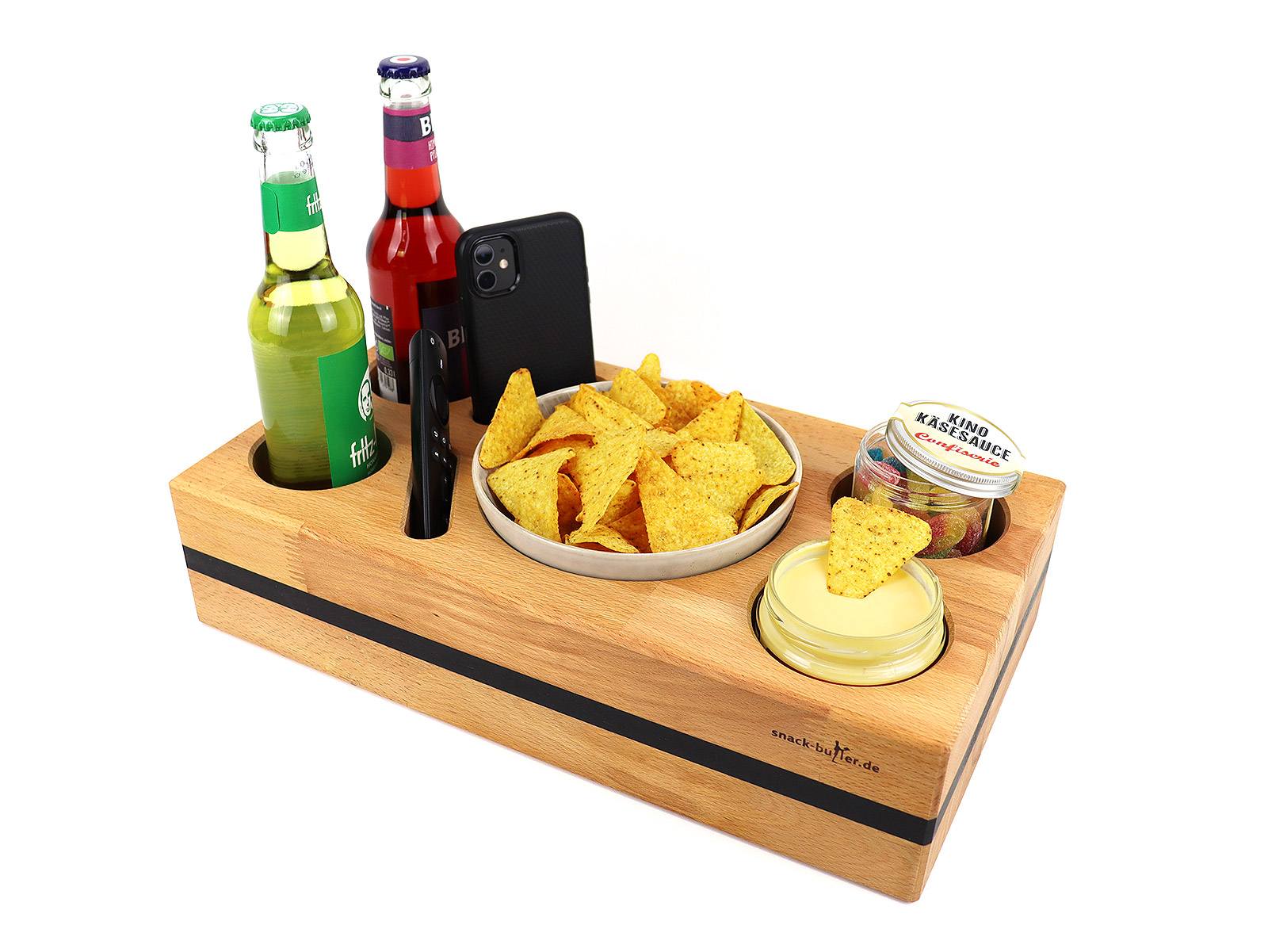 Erlebe das luxuriöse Design und die hohe Funktionalität des einzigartigen Snack-Butlers "BLACK NATURE" und kreiere ein besonderes Ambiente für deine Filmabende. Sichere dir noch heute das exklusive Snack-Butler-Set, um den perfekten Kinoabend für dich und deine Liebsten zu genießen.