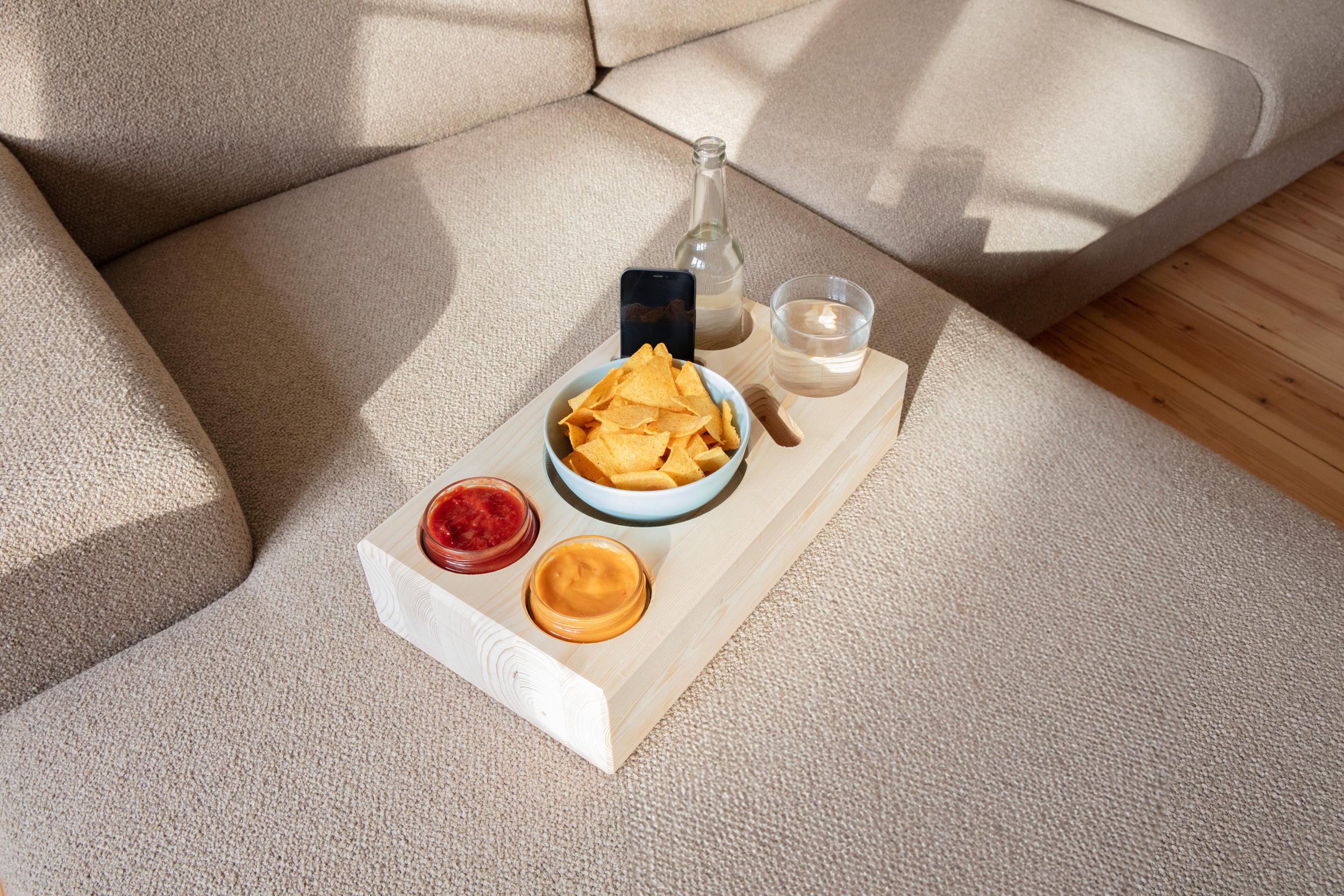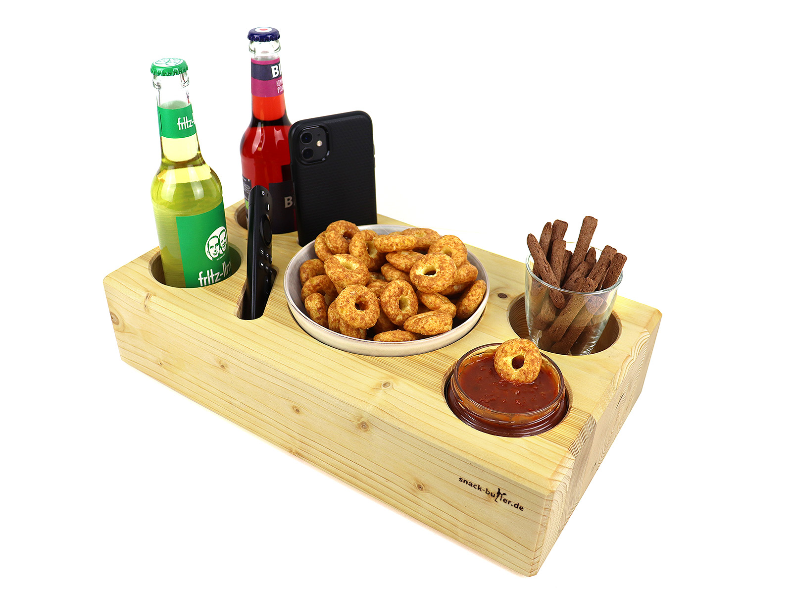 Genieße Snacks und Getränke in einem stilvollen und praktischen Ambiente mit dem Snack Butler "ONLY NATURE" Spruce (Fichte) - ein unverzichtbares Accessoire für jeden Film- oder Spieleabend!